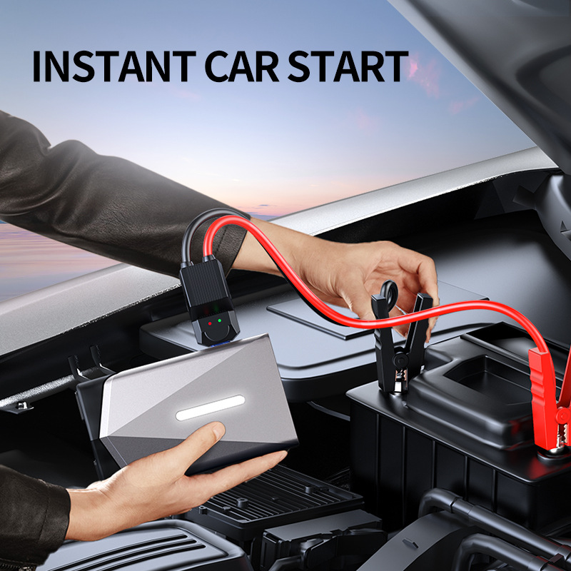 Emergency Jump Start: 12V portable power source for vehicle battery boosting with intelligent clamps and safety protection
