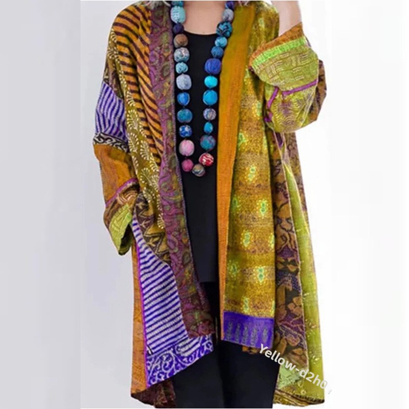 Loose Fit Printed Cotton Linen Cardigan