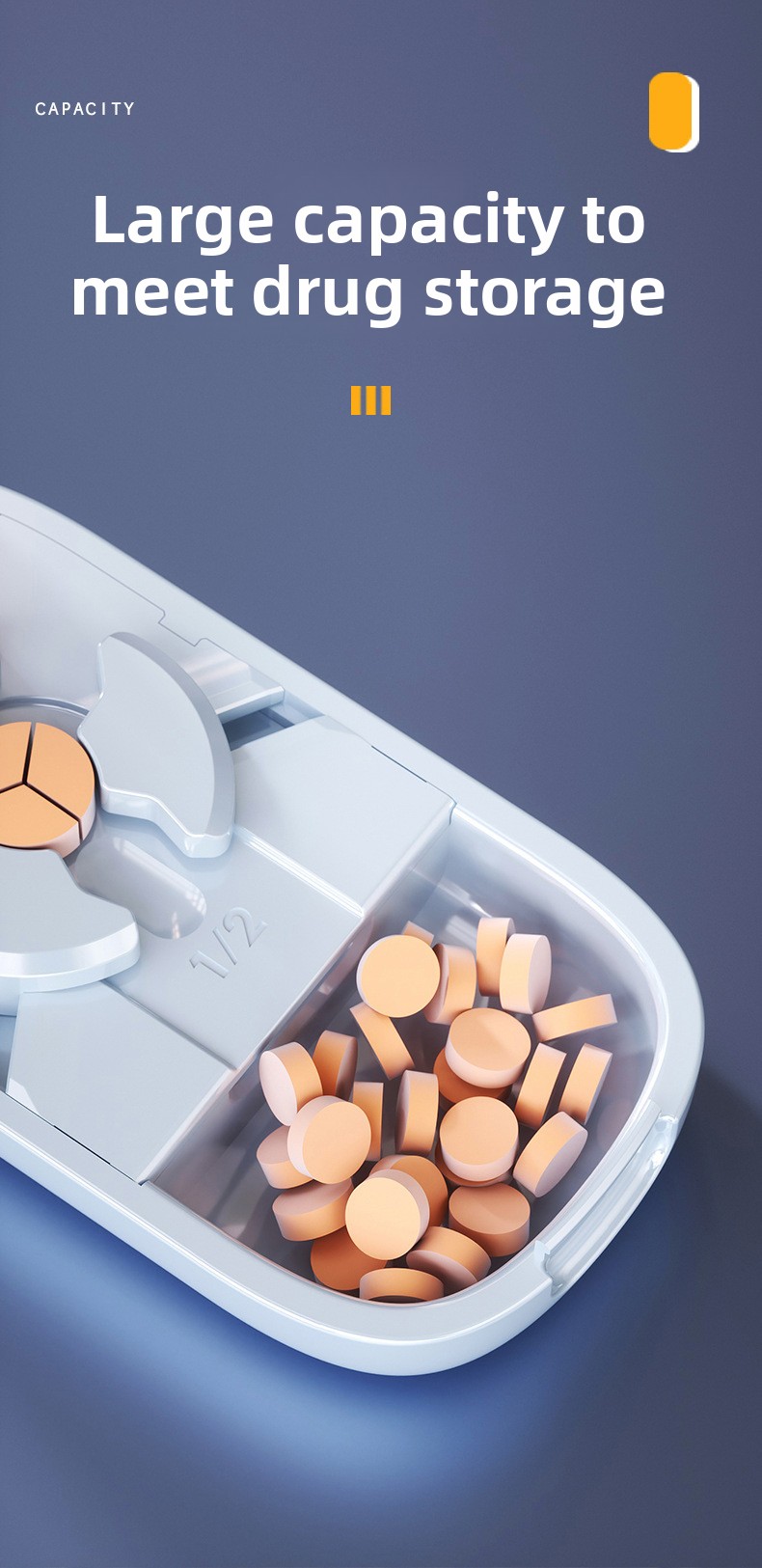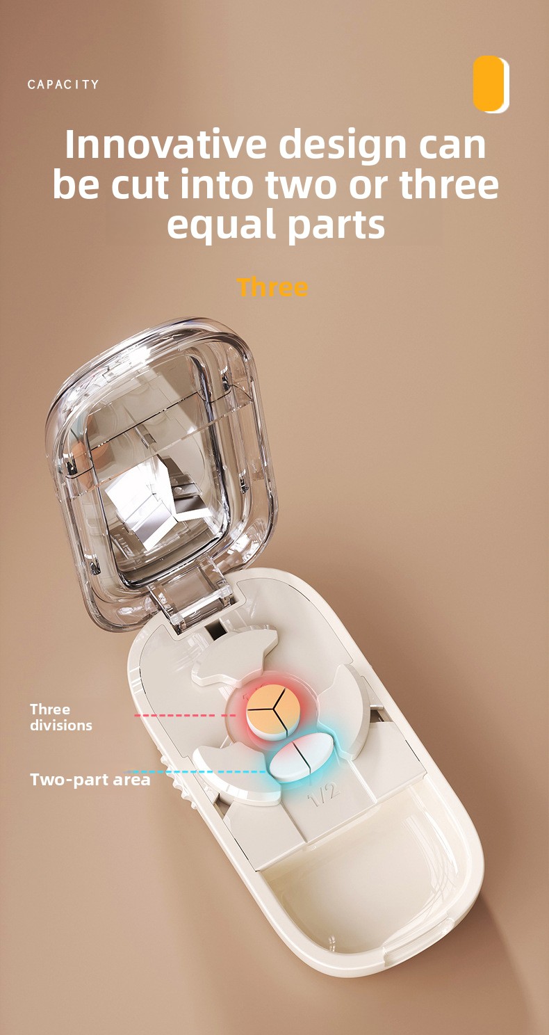 Functions: Tablet cutting and medicine storage